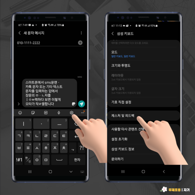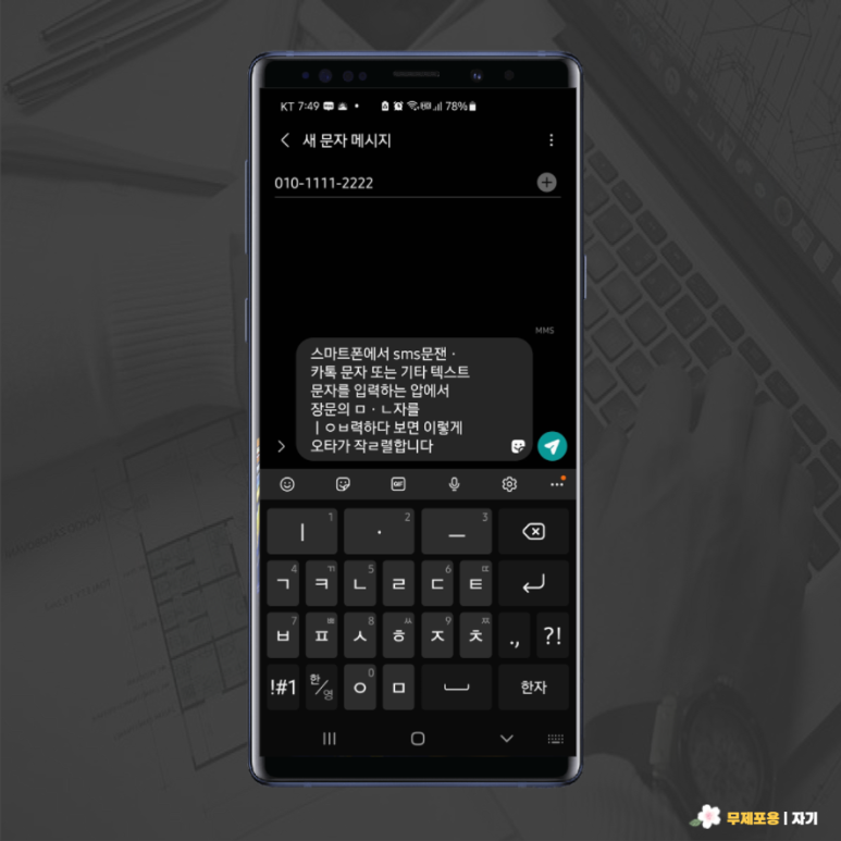 스마트폰에서 SMS문자나 카톡문자 또는 기타 텍스트를 입력하는 앱에서 장문의 문자를 입력하다보면 오타가 늘 발생하기 마련입니다.
