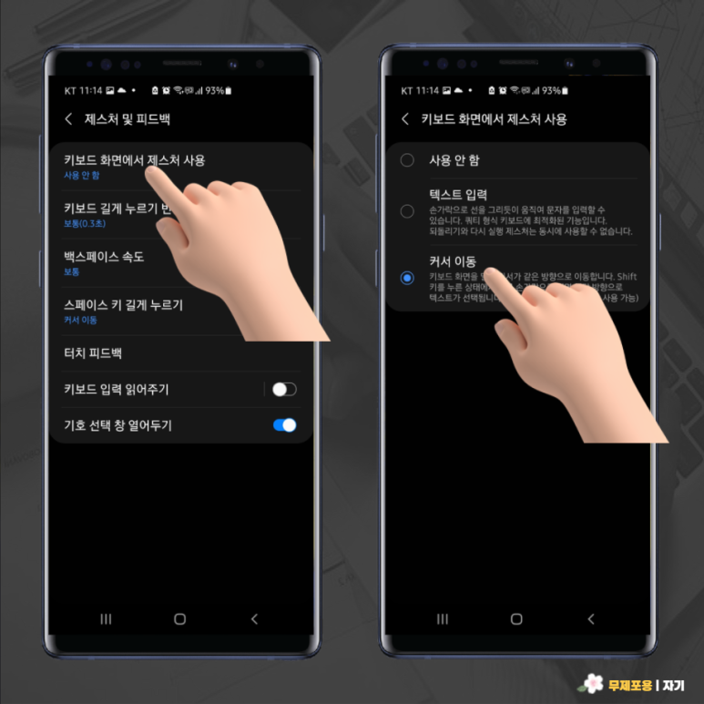 2. 키보드 화면에서 제스처사용 : 커서이동