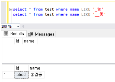 select * from test where name LIKE '_동'