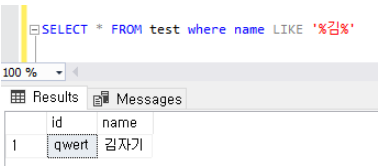 select * from test where name LIKE '%김%'