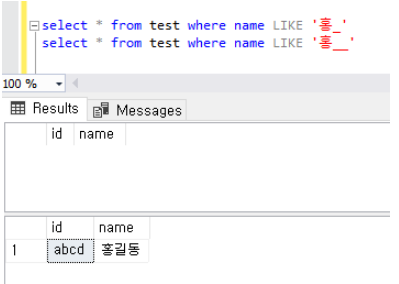 select * from test where name LIKE '홍__'
