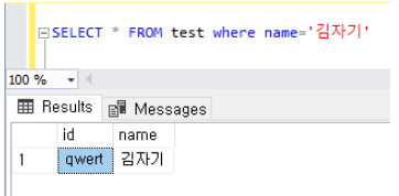 select * from test where name='김자기'