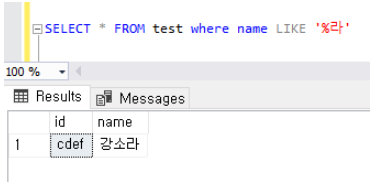 select * from test where name LIKE '%라'