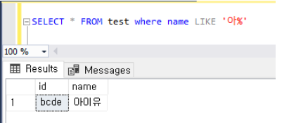 select * from test where name LIKE '아%'