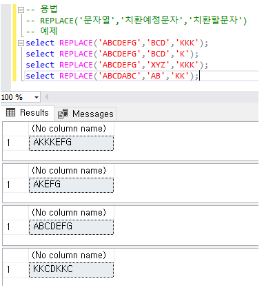 -- REPLACE('문자열','치환예정문자','치환할문자')
