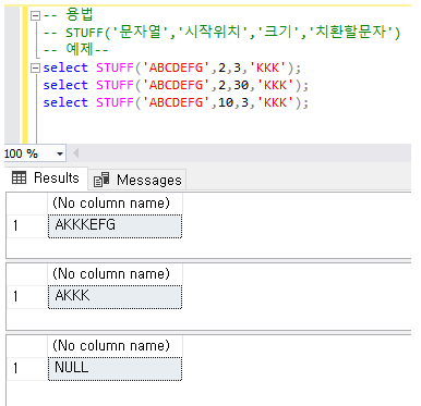 문자열 string을 치환하는 방법으로는 replace 함수와 stuff 함수가 있는데