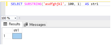 SELECT SUBSTRING('asdfghjkl', 100, 1)  AS str1결과