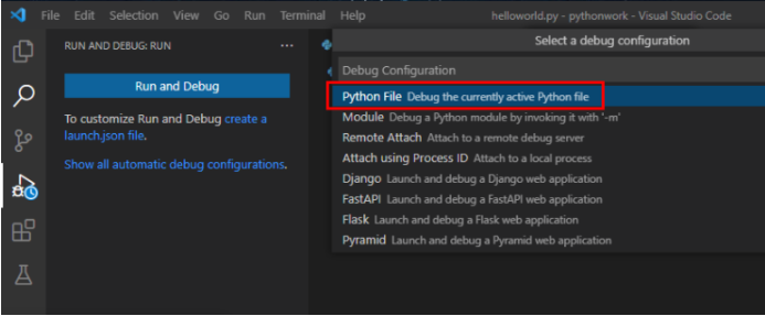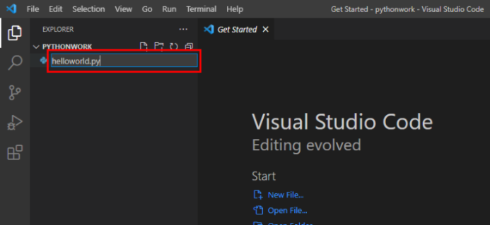 파일명을 "helloworld.py"로 입력하여 새 파일을 만들어 줍니다.