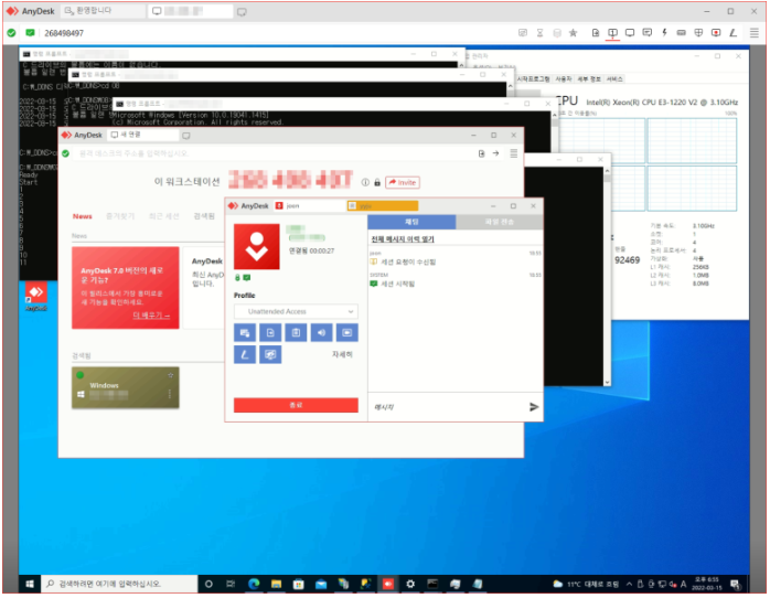 애니데스크는 로컬pc의 파일을 복사해서 원격화면에 붙여 넣기가 가능해서 편리합니다. 별도로 파일이동이나 복사 등의 메뉴가 필요 없습니다.