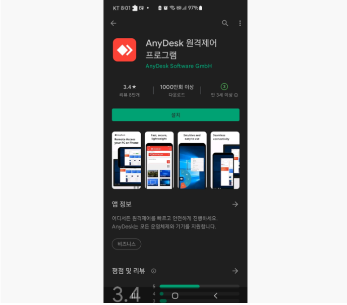 애니데스크 원격제어 프로그램은 스마트폰에도 설치하여 사용할 수 있어요.