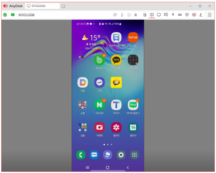pc에서 스마트폰을 원격으로 제어한 모습니다. 네트워크 사정에 따라 속도가 느릴 수 있다는 건 안 비밀입니다.