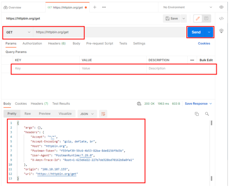 이때 API가 요구하는 parameter가 있다면 중간에 Key와 value를 입력해 주시면 됩니다.