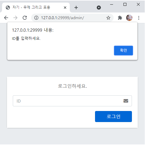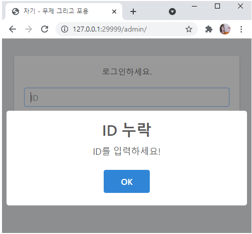 아이디를 입력하지 않고 확인을 누르면