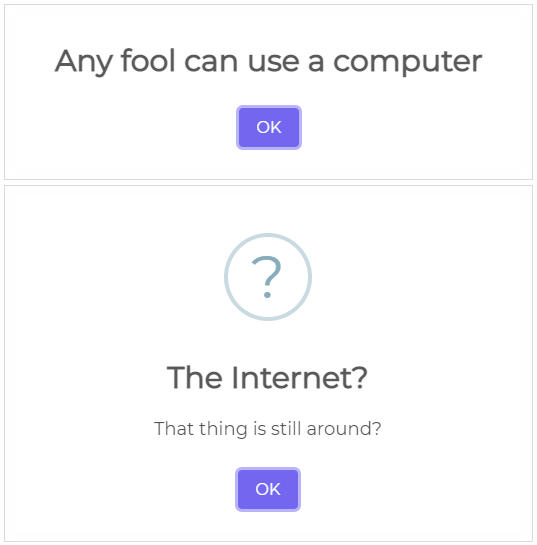 기본적인 alert()를 이용하면 이렇게 되죠.