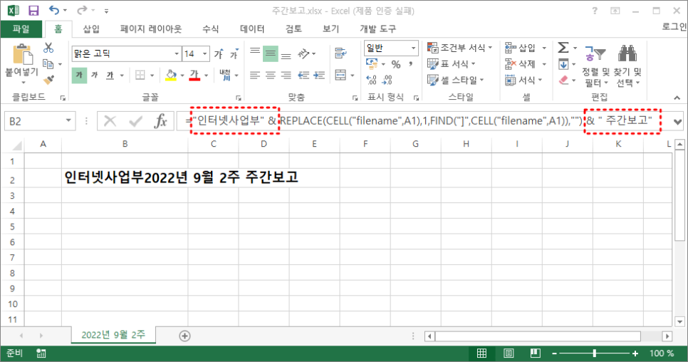 ="인터넷사업부" & REPLACE(CELL("filename",A1),1,FIND("]",CELL("filename",A1)),"") & " 주간보고"