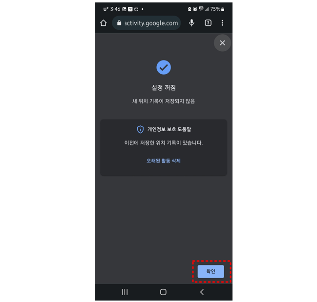 이렇게 하면 이 시간 이후로는 구글 타임라인에 나의 정보가 기록되지 않습니다.
