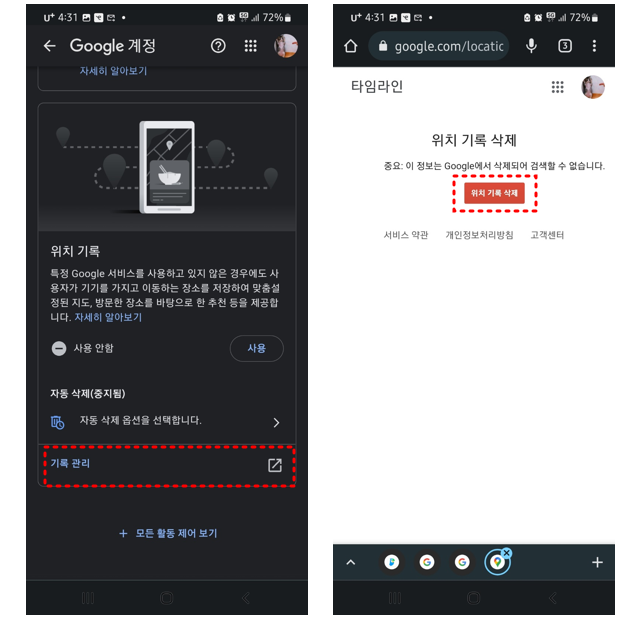 그럼 지금까지 저장된 타임라인 정보를 삭제하려면 어떻게 하는지 다음 내용에서 알아볼게요.