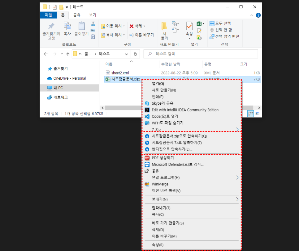 그리고 다시 탐색기로 와서 파일위에서 컨텍스트 메뉴를 띄워보니 반디집 관련 메뉴가 사라진 것을 확인할 수 있습니다.