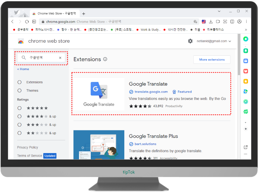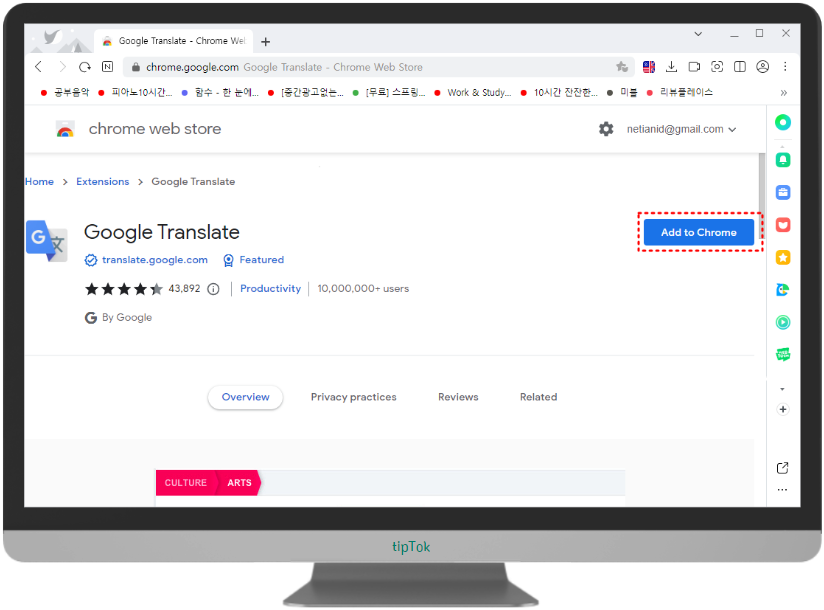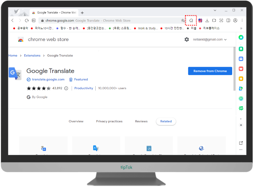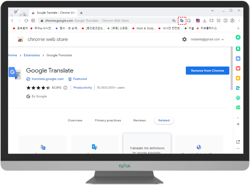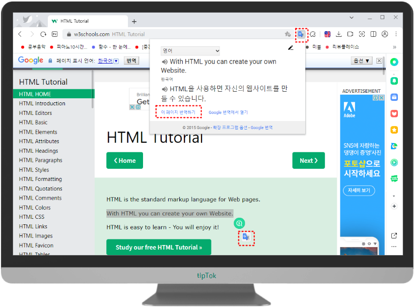 크롬 번역기 확장앱이 웨일에 추가됩니다.