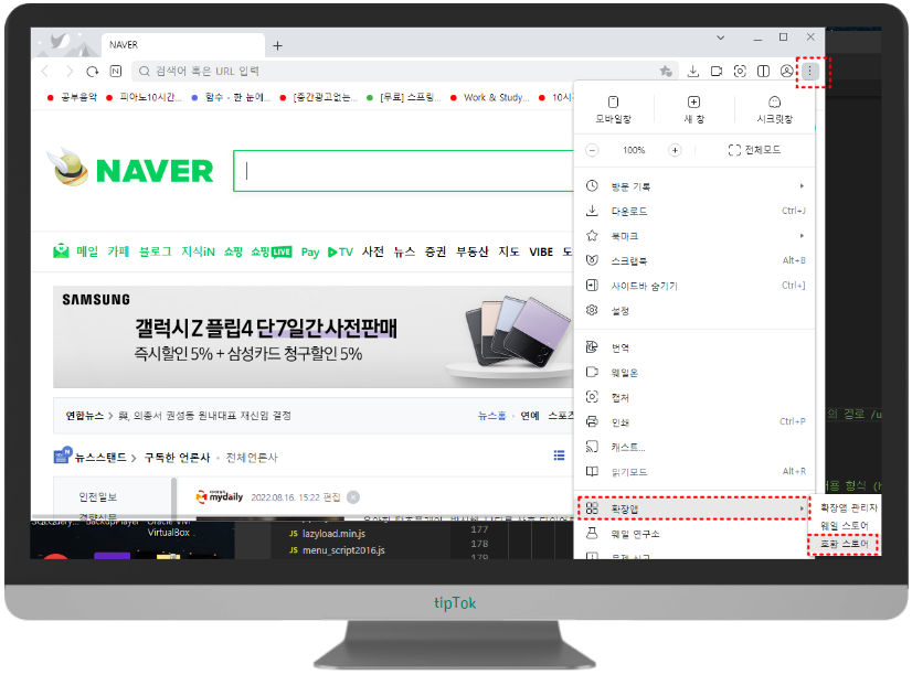 네이버 웨일 브라우저 우측 상단에 점3개