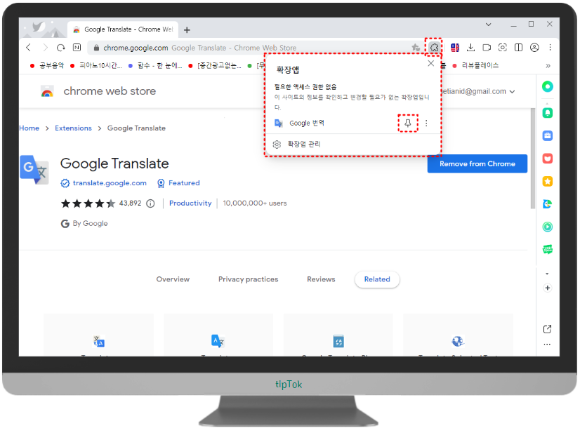 웨일에 크롬번역기가 정상적으로 추가된 후