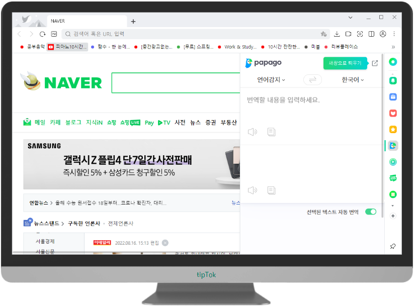 웨일 브라우저에서 구글 번역기를