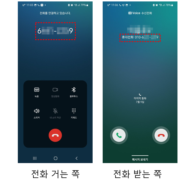 왼쪽 그림은 전화를 거는 쪽입니다.