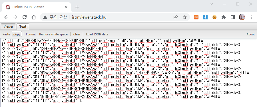 이럴 땐 json viewer 사이트의 도움을 받으시면 됩니다.
