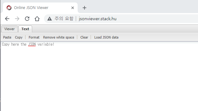 사이트에 접속하면 이렇게 json 데이터를 입력하는 화면이 바로 나옵니다.
