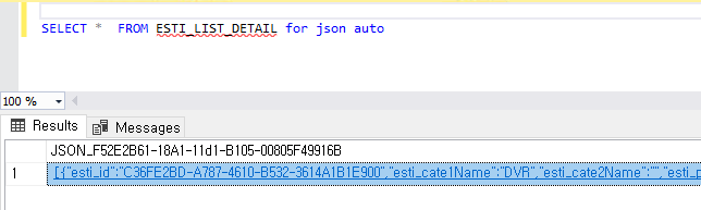 참고로, 위 쿼리는 sql server에서 작업한 것이고 for json auto 옵션은 sql server 2016 부터 지원됩니다.