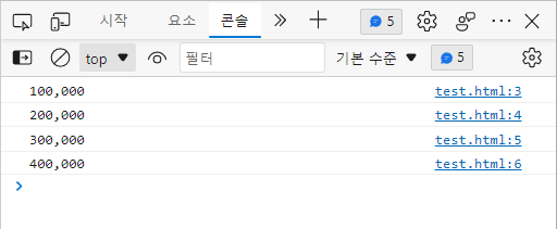 Intl.NumberFormat을 활용한 천단위마다 콤마를 삽입해 주는 코드 예제이다.