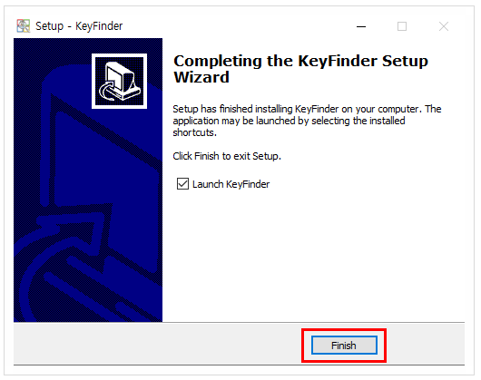'Launch KeyFinder' 에 체크를 해 두시면 프로그램이 바로 실행됩니다.