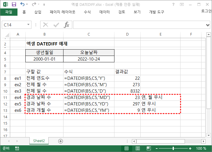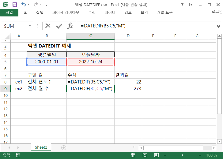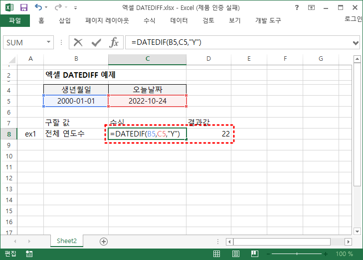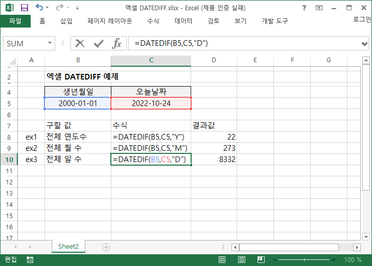 이제 본격적으로 datedif 함수를 알아보기 위해 예제로 설명해 보겠습니다.