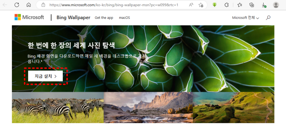 하지만 마이크로소프트에서 제공하는 매일 새로운 배경 화면을 얻기 프로그램을 설정해 주면 매일 새로운 배경화면을 만나보실 수 있답니다.