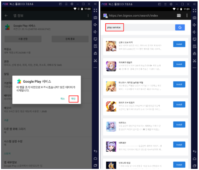위와 같이 Google Play services 로 들어가서 Google Play 서비스를 설치 진행해 주시면 끝입니다.