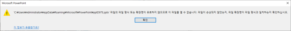 라고 경고창이 뜨면서 ppt 파일이 열리지 않는 경우도 있습니다.
