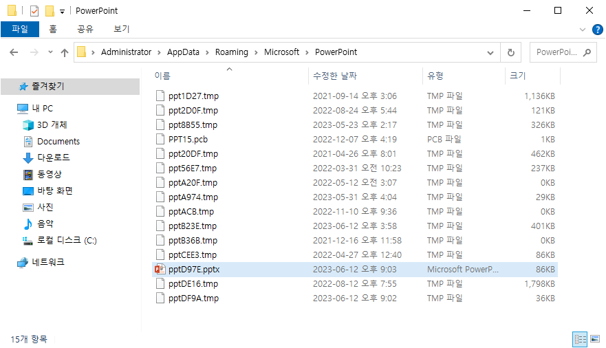 이럴 때에는 아래 그림처럼 tmp파일의 확장자명을 ppt 로 바꾸어 주세요.